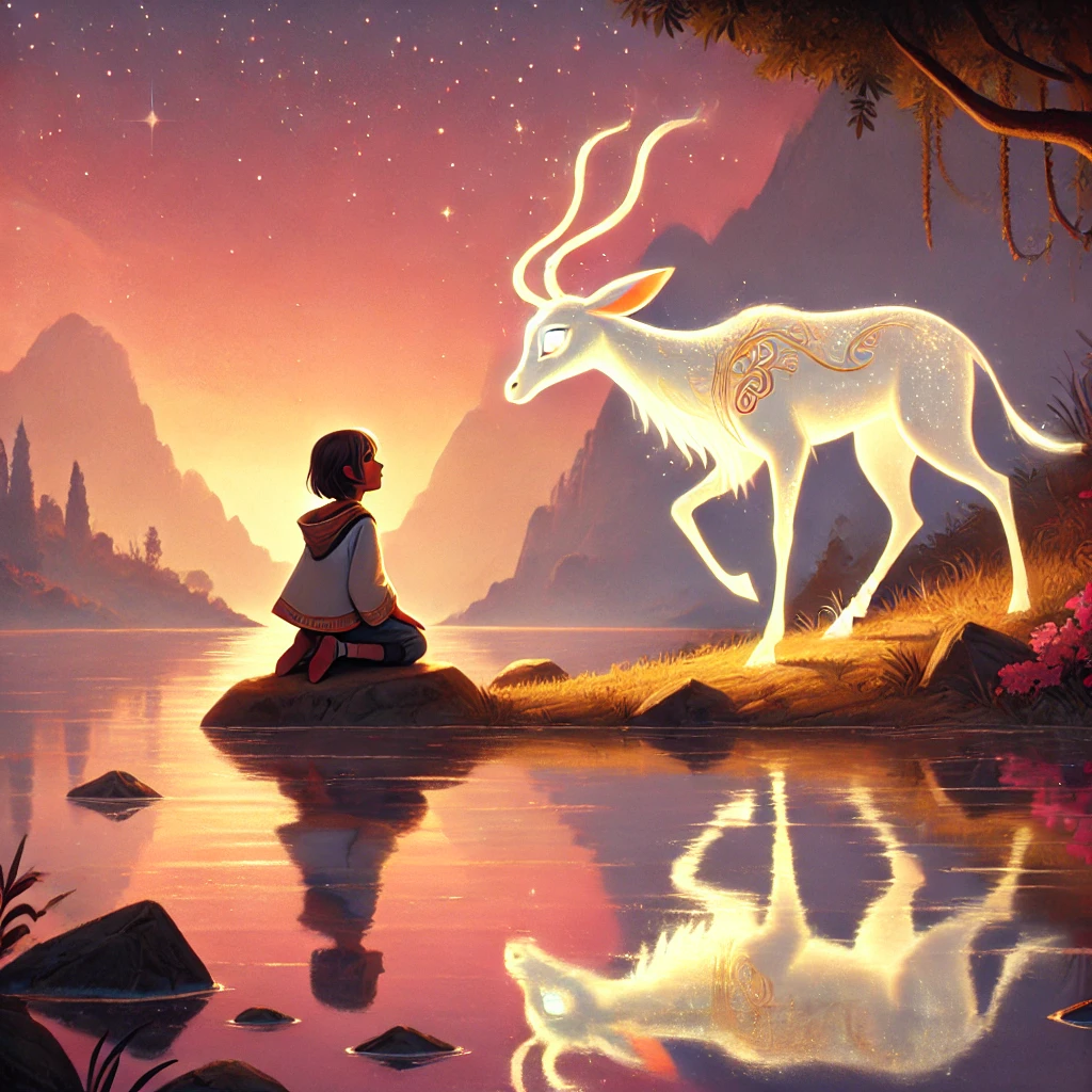 As Aaliyah and Noor continued their journey through the land of eternal dawn. They came to a river that Aaliyah had never seen before. It was known as the River of Reflections. The water was so clear and calm that it looked like a perfect mirror. reflecting not only the sky. But also the deepest thoughts and dreams of those who look at it.
